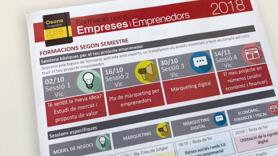Les entitats de promoció econòmica de la comarca d’Osona i el Lluçanès i Creacció ja tenen a punt l’oferta de cursos subvencionats de cara al segon semestre del programa “Formació per a Empreses i Emprenedors”. Una de les principals novetats d’enguany són les anomenades Sessions bàsiques per al teu projecte … Llegir-ne més