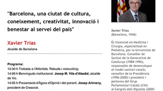 Parlarà de com Osona es pot beneficiar de l’atracció de “Barcelona, una ciutat de cultura, coneixement, creativitat, innovació i benestar al servei del país”