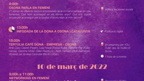 La Cambra d’Osona, Creacció i el Consell Empresarial d’Osona organitzen Fem DEO, dues jornades els dies 8 i 10 de març, que combinen el format online amb el presencial en motiu del Dia Internacional de la Dona.