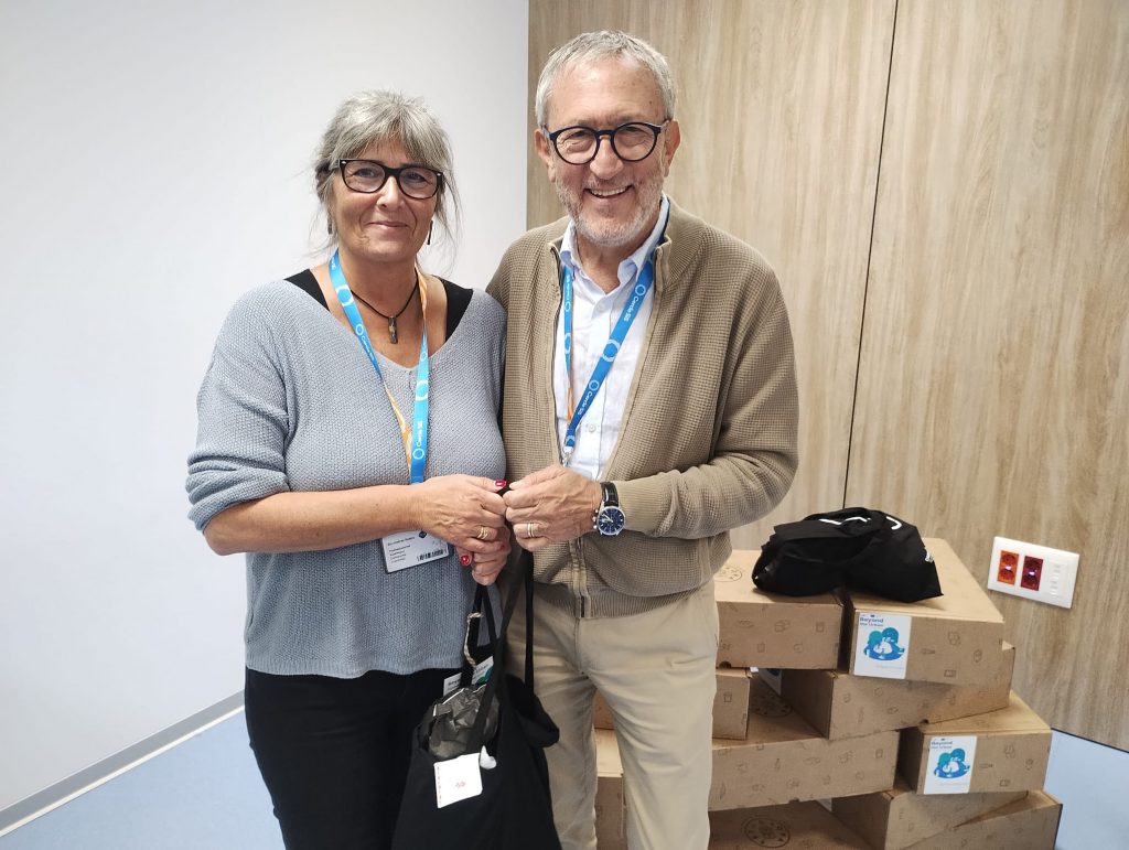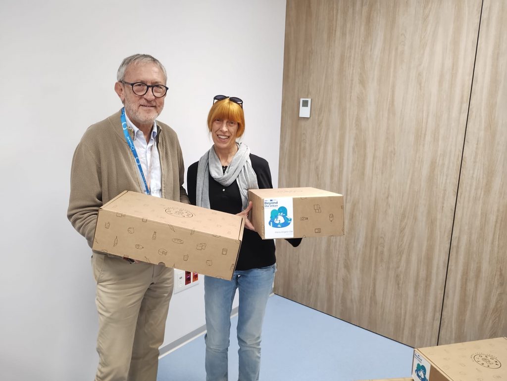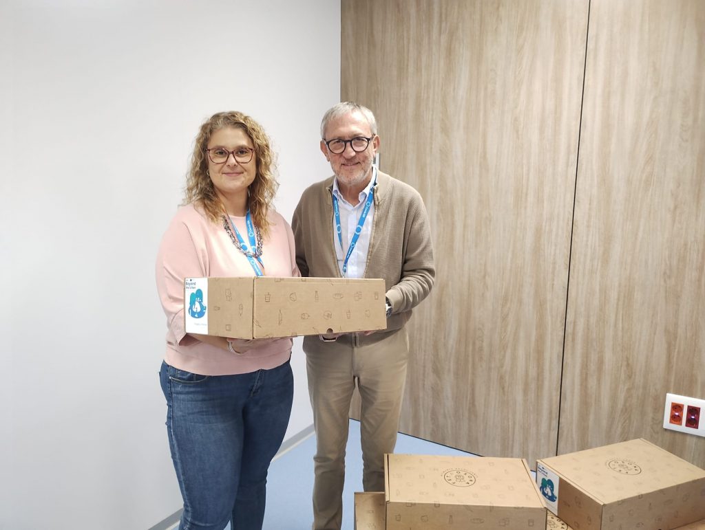 El Consorci Hospitalari de Vic (CHV) ha acollit aquest dimecres, 24 de setembre, el lliurament dels lots de “Fet a Osona: Aliments Excel·lents” a les persones treballadores que han participat en el projecte pilot de mobilitat laboral compartida, on s’instava a compartir trajecte per desplaçar-se a la feina. L’acte ha comptat amb la presència de Mònica Carrera, coordinadora del projecte europeu Beyond the Urban (URBACT), i Jaume Castellano, director de Serveis i SAS del CHV, que han agraït la implicació dels treballadors i treballadores en aquesta iniciativa.